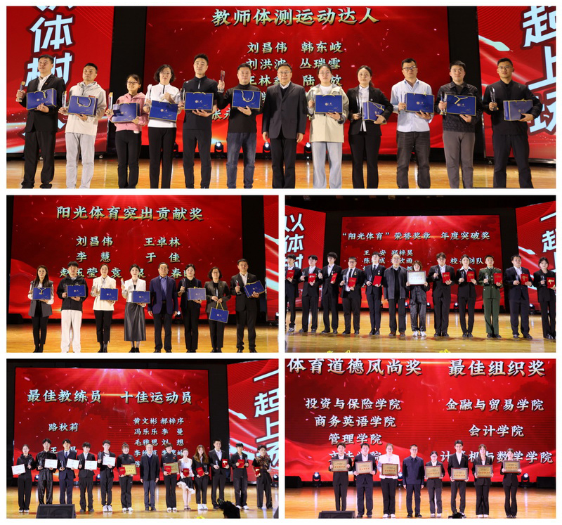 为深入学习贯彻习近平总书记关于建设体育强国的重要论述,全面落实习近平总书记“帮助学生在体育锻炼中享受乐趣、增强体质、健全人格、锤炼意志”重要指示精神,营造健康向上、师生积极参与的校园体育文化氛围,4月16日下午,我校在金苑会堂举行2024年“阳光体育”活动颁奖典礼暨2025年开幕式。校长张林,党委副书记刘景顺,纪委书记孙宝民,副校长于雷、武建龙出席活动。全校一千余名师生共享了这场以“以体树人 一起上场”为主题的校园体育文化盛宴。