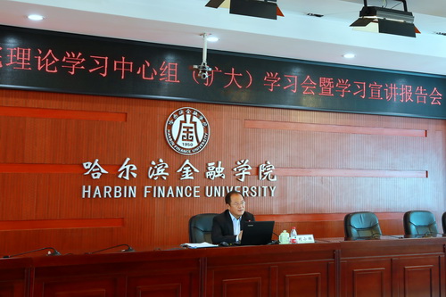 10月16日上午,哈尔滨金融学院在综合楼655报告厅召开党委理论学习中心组(扩大)学习会暨学习宣讲报告会,传达学习习近平总书记在新时代推动东北全面振兴座谈会上和视察我省时的重要讲话重要指示精神,深入学习贯彻省委十三届四次全会精神,研究部署下一步工作。会上,党委书记刘小辉作了题为《学习贯彻习近平总书记在我省视察期间重要讲话重要指示精神和省委十三届四次全会精神 引领学校事业高质量发展》的报告。