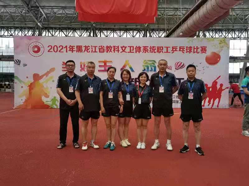 2021年7月7日至9日,由黑龙江省教科文卫体工会主办、哈尔滨理工大学承办的黑龙江省教科文卫体系统 “当好主人翁、建功新龙江”职工乒乓球比赛在哈尔滨会展中心运动城举行。来自全省各市(地)和高校的43支代表队、413名职工运动员,参加了为期三天的比赛。经过不懈努力,我校混合团体荣获全省第九名,纪委书记肖洪荣获领导组男子单打第五名,王小龙荣获中年男子单打第五名,我校荣获优秀组织奖。